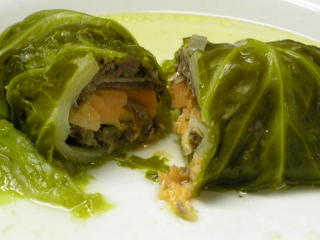 | ロールキャベツに豆腐と甘鮭を加えるというちょっと異端児的な料理です。しかしながら、味は面白いほどにいいんですよ。(*^_^*) |
